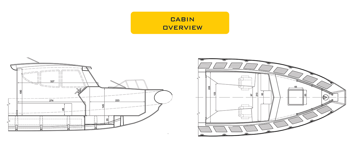 Technical Specifications: Flag: Polish Call Sign/MMSI: SPG5070 / 261011330 Class: PRS (bKM III) hyb rob/pat Trading area: 20 Nm offshore Built: Sportis S.A., Poland 2019 Ship Type: workboat / patrol boat Material: hypalon/laminate LOA: 10,5m, Draft: 0,80 m Maximum speed: 32 kn Economical speed: 26 kn Engines: 2 x Mercury 150HP, outboard, petrol