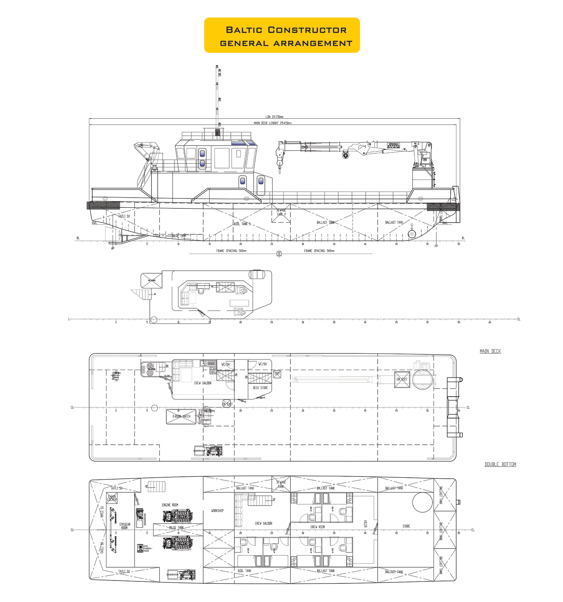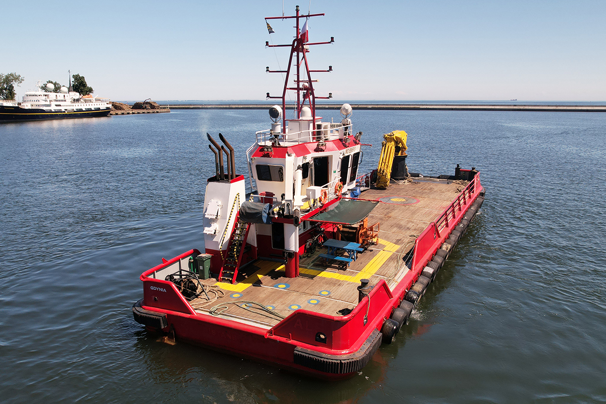 Classification/Flag Flag: Polish Class: RINA Call Sign/MMSI: SNOP/261007303 Trading area: 60 Nm offshore Build: 1992 Converted: 2020 Ship type: Multicat Maximum speed: 9,7 kn LOA: 29,45m Beam: 8,64m Draft: 2m Bow thruster: 80 kVa 600mm propeller Engines: 2x Volvo Penta 340HP Generators: 1xVolvo Penta 250 kVa, 1xDetroid 90kVa Deck generator: Katana 110 Kva Fuel consumption: 90l/h